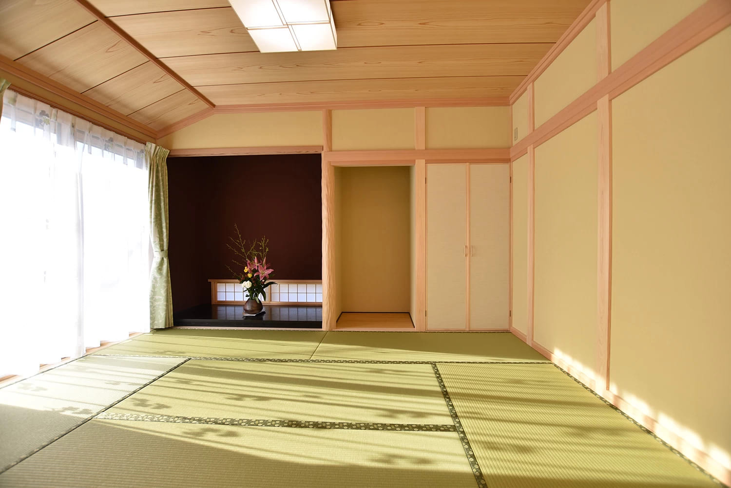 LDK横の和室。シンプルながらも厳かな雰囲気に。