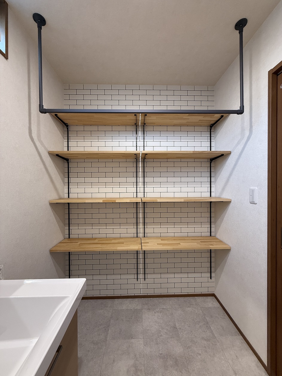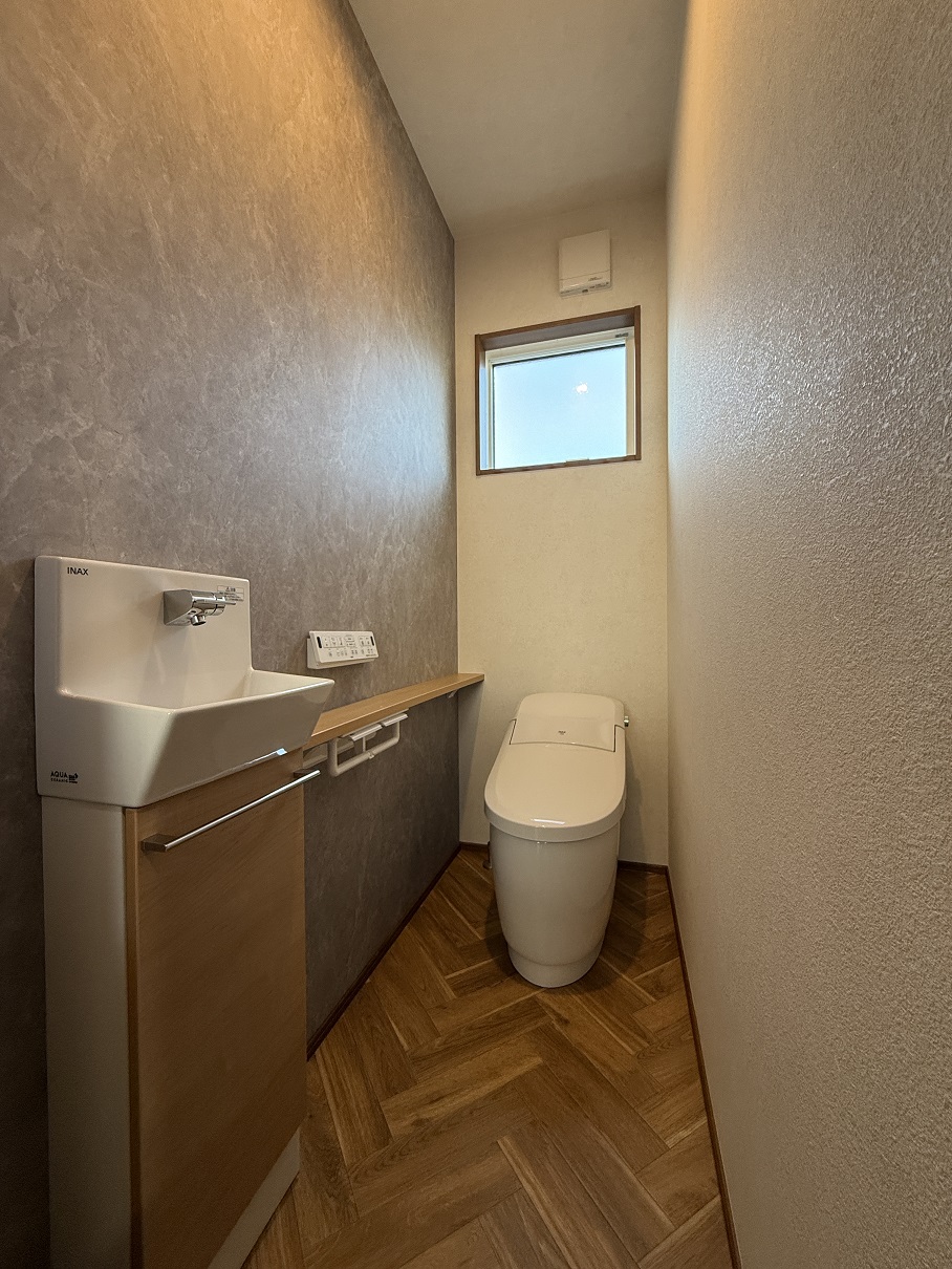 人気のヘリンボーン柄のクッションフロアに品のある色味の壁紙をチョイス!
