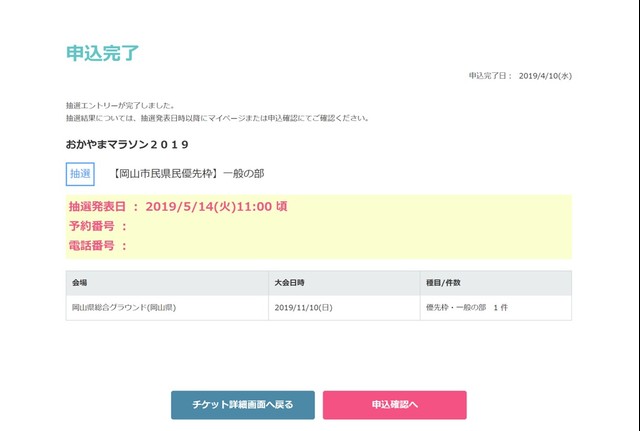 もう定番となって参りました。 そうです。岡山マラソンの岡山県民枠のエントリー申込が10日から可能になりました。 と、いうことでさっそく申込を行いました。 県民枠は今年も2000人の予定で、昨年は一般枠として当選通知がきました。 今年も「当たれば」走る。「当たれば」完走するを目標に マウスに力を入れました!! 県民枠の抽選結果は5月中旬ですので、それまでお楽しみに(^^