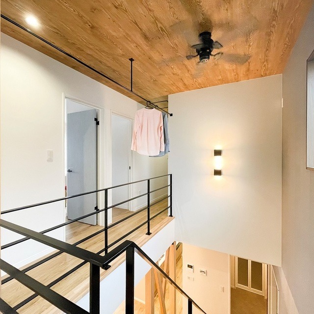 洗濯ものが干せるバー付き2階ホール。