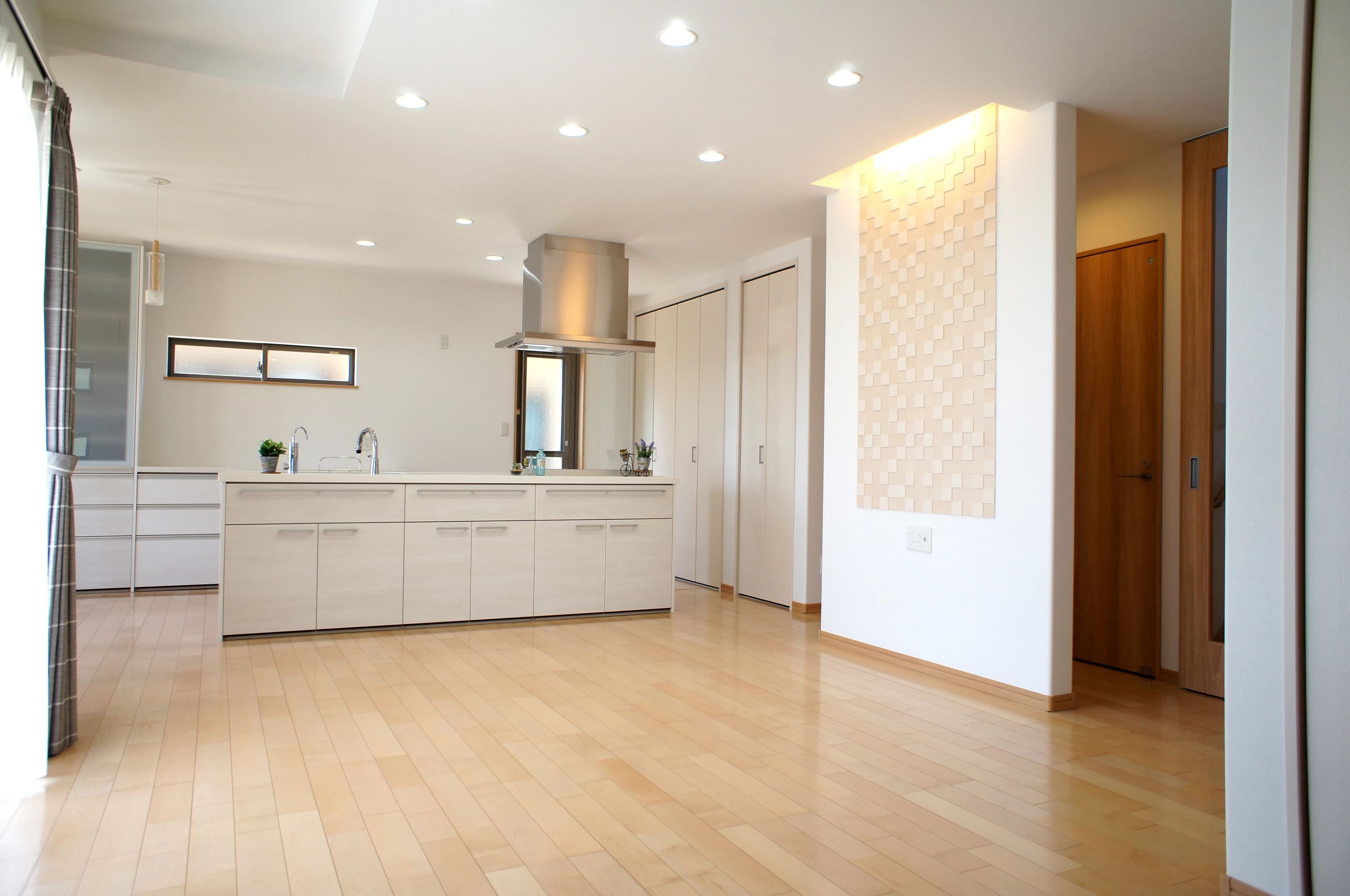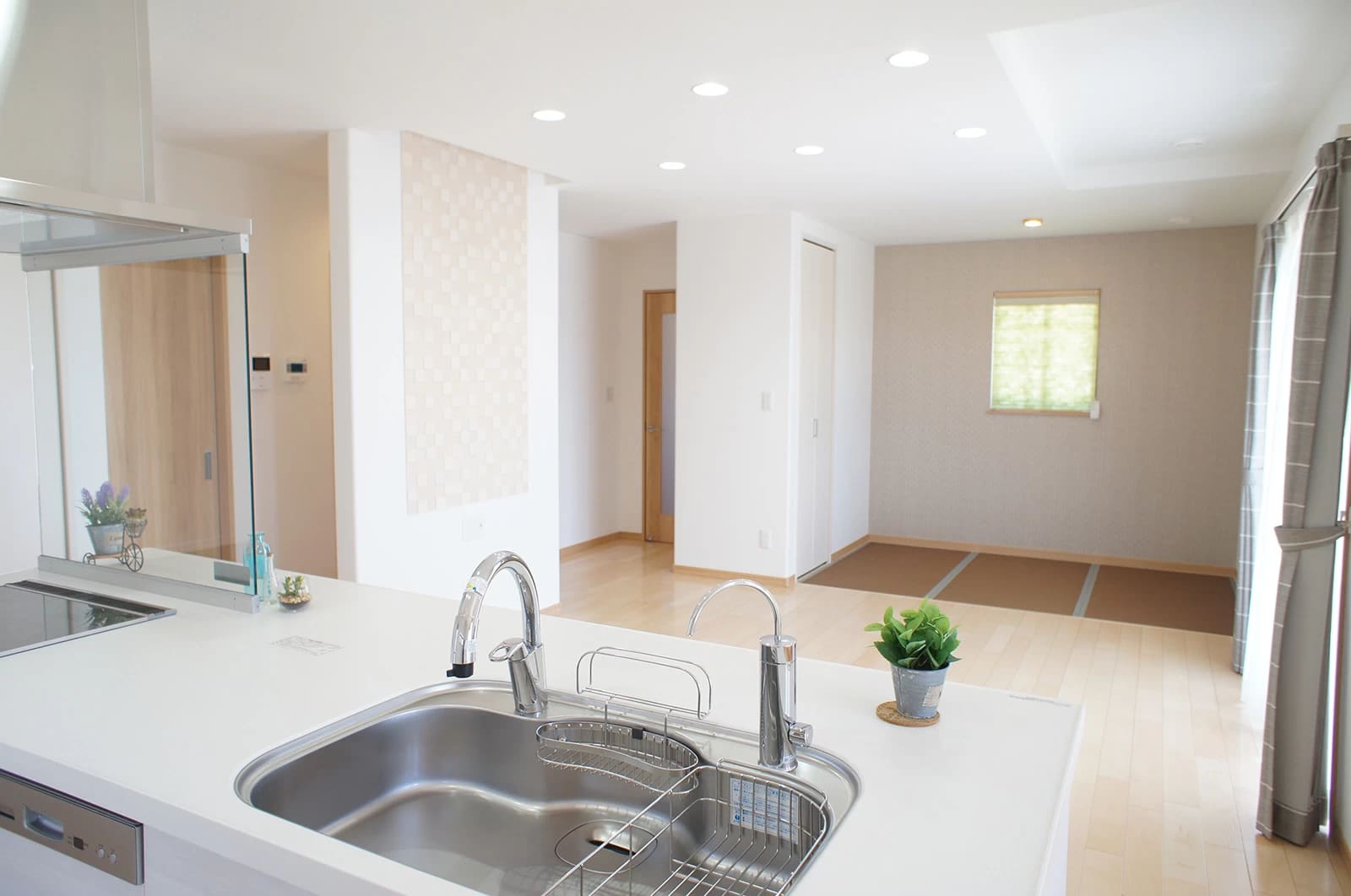 LDKどこからでもテレビが見えるプランに。キッチンから子供の様子も伺えて安心。
