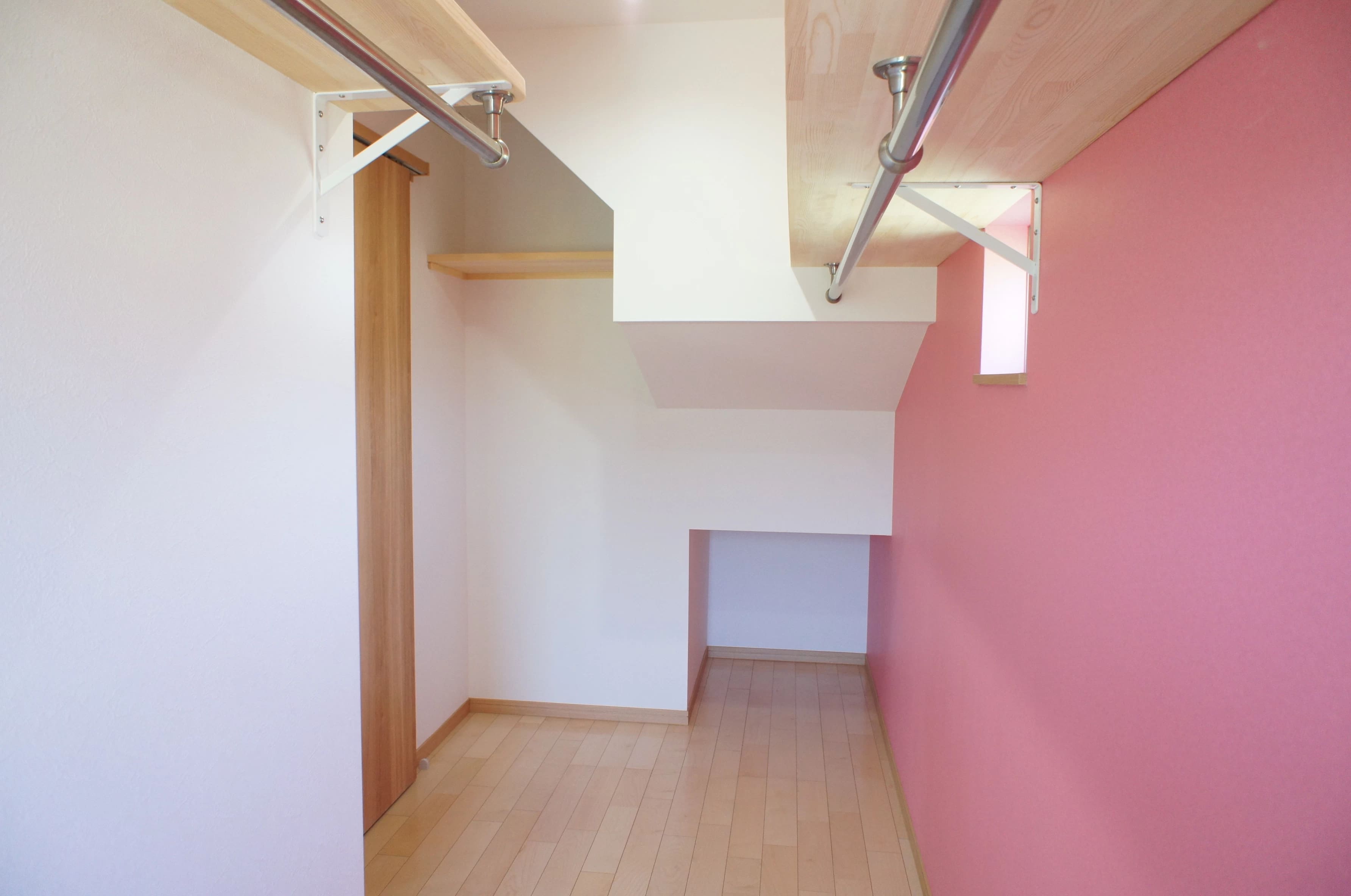 収納力のあるおうちにしたいという奥様。2Fだけでなく1FにもWICを設けました。洗濯物は1Fのテラススペースへ。洗面室からの動線も楽で、家事と子育てのしやすい設計に。屋根付きのバルコニーも完備で雨の日も安心。長期優良住宅でもちろん耐震等級3です。